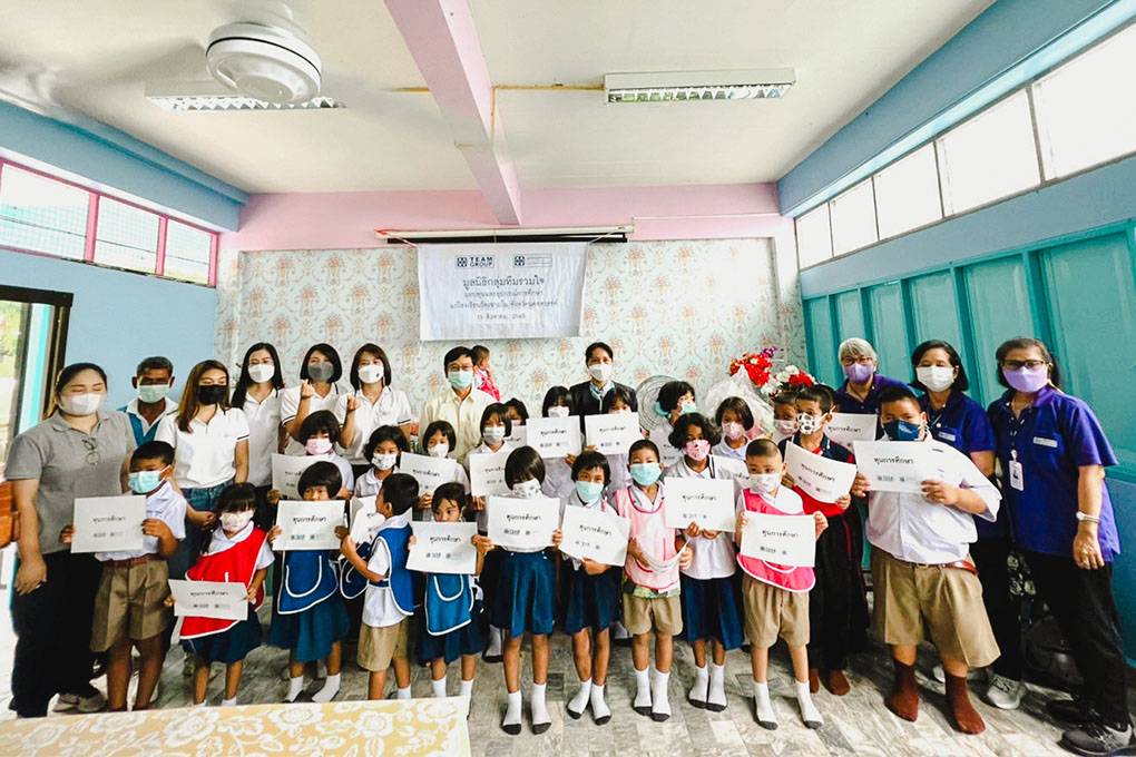 มููลนิธิกลุ่มทีมรวมใจ และทีมกรุ๊ป ร่วมสร้างโอกาสทางการศึกษาเสริมสร้างศักยภาพเด็กไทยให้พัฒนาตนเอง ด้วยการมอบทุุนการศึกษา ให้แก่นักเรียนที่่เรียนดีแต่่ด้อยโอกาส และมอบเงินทุุนสนับสนุุนให้แก่ 9 โรงเรียนภายใต้การอุุปถัมภ์ของทีมกรุ๊ปมาอย่่างต่่อเนื่่อง ตลอดระยะเวลา 15 ปี โดยจัดกิจกรรมมอบทุุนการศึกษ าภาคเรียนที่่ 2/2565 ในเขตพื้้นที่่จังหวัดนครนายก 4 แห่่ง ได้แก่ โรงเรียนวัดท่าด่าน โรงเรียนวัดท่าชัย โรงเรียนวัดวังยายฉิม และโรงเรียนวัดหุุบเมย และในเขตพื้นที่จังหวัดนครสวรรค์ 5 แห่ง ได้แก่ โรงเรียนวิชาวดี โรงเรียนวัดเขามโน โรงเรียนวัดบ้านมะเกลือ โรงเรียนวัดศรีสวรรค์สังฆาราม และโรงเรียนนครสวรรค์ นำโดย ดร .ประเสริฐ ภัทรมัย ปร ะธานกรรมการ มููลนิธิกลุ่่มทีมรวมใจ พร้อมด้วยคณะผู้บริหารและพนักงานทีมกรุ๊ป เมื่อเร็ว ๆ นี้