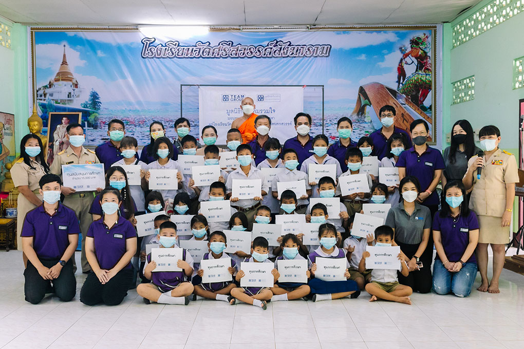 มููลนิธิกลุ่มทีมรวมใจ และทีมกรุ๊ป ร่วมสร้างโอกาสทางการศึกษาเสริมสร้างศักยภาพเด็กไทยให้พัฒนาตนเอง ด้วยการมอบทุุนการศึกษา ให้แก่นักเรียนที่่เรียนดีแต่่ด้อยโอกาส และมอบเงินทุุนสนับสนุุนให้แก่ 9 โรงเรียนภายใต้การอุุปถัมภ์ของทีมกรุ๊ปมาอย่่างต่่อเนื่่อง ตลอดระยะเวลา 15 ปี โดยจัดกิจกรรมมอบทุุนการศึกษ าภาคเรียนที่่ 2/2565 ในเขตพื้้นที่่จังหวัดนครนายก 4 แห่่ง ได้แก่ โรงเรียนวัดท่าด่าน โรงเรียนวัดท่าชัย โรงเรียนวัดวังยายฉิม และโรงเรียนวัดหุุบเมย และในเขตพื้นที่จังหวัดนครสวรรค์ 5 แห่ง ได้แก่ โรงเรียนวิชาวดี โรงเรียนวัดเขามโน โรงเรียนวัดบ้านมะเกลือ โรงเรียนวัดศรีสวรรค์สังฆาราม และโรงเรียนนครสวรรค์ นำโดย ดร .ประเสริฐ ภัทรมัย ปร ะธานกรรมการ มููลนิธิกลุ่่มทีมรวมใจ พร้อมด้วยคณะผู้บริหารและพนักงานทีมกรุ๊ป เมื่อเร็ว ๆ นี้