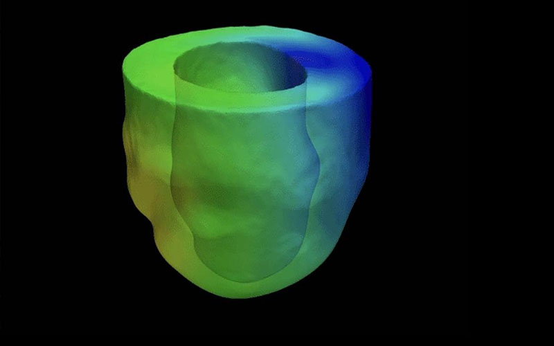 ภาพจำลองการวิเคราะห์แรง ความร้อน และการบิดตัว ที่แบบจำลอง AI ชื่อ Dimon ใช้ในการวิเคราะห์ลัดขั้นตอนการคำนวณที่สลับซับซ้อนของวิศวกร Dimon นี้ สร้างขึ้นโดย AI ที่เรียนรู้จากการคำนวณทางวิศวกรรมหลายพันกรณี จนสามารถจับทิศทางได้ แล้ว AI ก็สร้างแบบจำลองวิธีวิเคราะห์ด้วยตนเองที่คิดได้อย่างรวดเร็วและได้คำตอบที่ถูกต้องแม่นยำ (Mingling Yin, Johns Hopkins University, 2024)