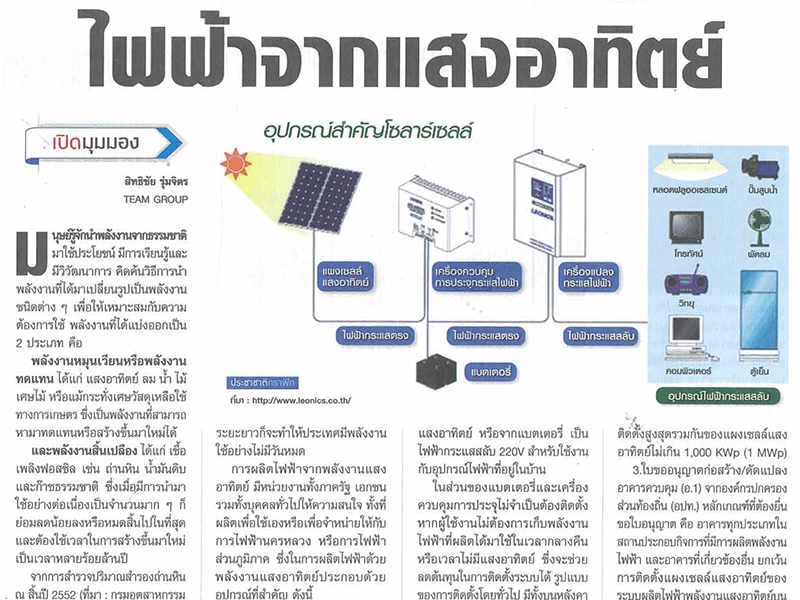 อ่าน “ไฟฟ้าจากแสงอาทิตย์” โดย คุณสิทธิชัย รุ่มจิตร ทีมกรุ๊ป ตีพิมพ์ในนสพ.ประชาชาติธุรกิจ ฉบับวันที่ 25- 28 ต.ค.61 หน้า 17
