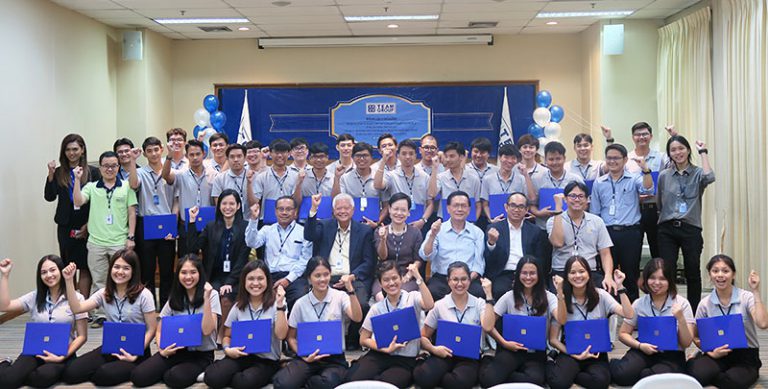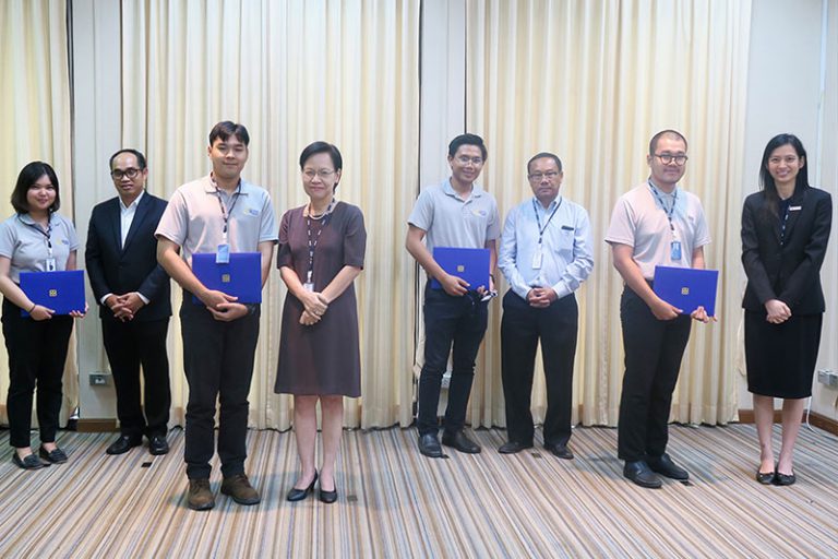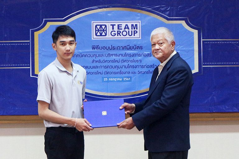 Mr. Peerawat Premchuen, TEAM GROUP’s Director, presented certificates for training courses “Construction Supervision and Management Techniques for Mega Projects for Young Engineers, Batch#3 (Civil Engineers)” and “Design and Construction Supervision of Mega Projects for Young Engineers, Batch#2 (Mechanical Engineers and Electrical Engineers)”. After that Mr. Chawalit Chantararat, Dr. Sirinimit Boonyuen, Dr. Apichart Sramoon, Ms. Mayuree Khuayjarernpahishk, and Mr. Danaisak Panyawai gave employee cards to 32 young engineers followed by a Thai-traditional welcome ceremony. The event was organized by IMT.