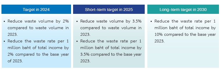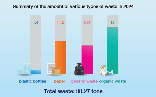 The Company has campaigned for employees to reduce waste generation to be less than 0.3 kilograms/person/day. In 2024, employee generates the waste at a rate of 0.34 kilograms/person/day.