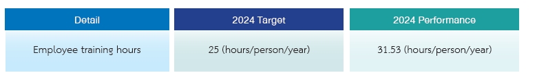 For the year 2025, the Company has established a plan to expand learning opportunities for employees by setting a target of an average of 25 training hours per person per year. This includes the development of e-Learning courses and the expansion of training programs through external site visits to further enrich diverse learning experiences. The Company will conduct training needs analysis alongside promoting knowledge and developing programs that align with employees’ potential. This approach aims to ensure effective skill development, support the organization’s growth objectives, and foster employees’ career advancement with long-term stability.