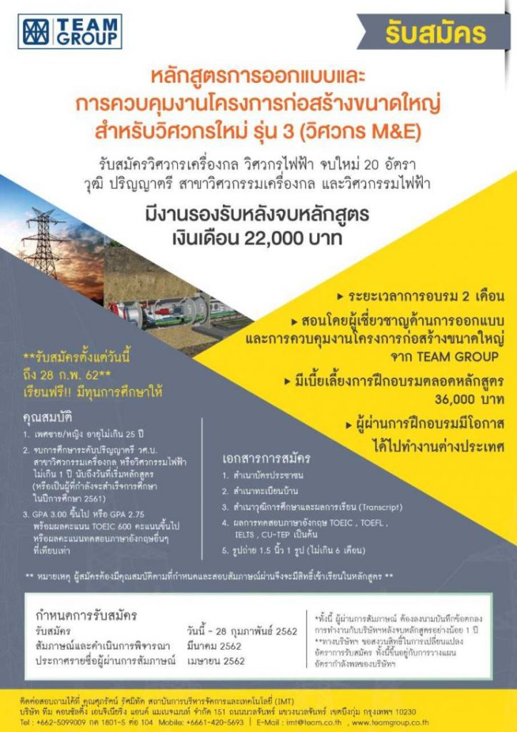 รับสมัครหลักสูตรการออกแบบ และการควบคุมงานโครงการก่อสร้างขนาดใหญ่ สำหรับวิศวกรรุ่นใหม่ รุ่น 3 (วิศวกร M&E)
