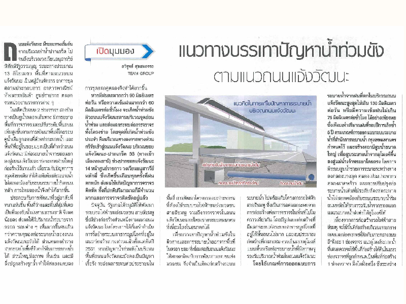 อ่าน “แนวทางบรรเทาปัญหาน้ำท่วมขังตามแนวถนนแจ้งวัฒนะ “โดย คุณอวิรุทธ์ สุขสมอรรถ ทีมกรุ๊ป ตีพิมพ์ในนสพ.ประชาชาติธุรกิจ ฉบับวันที่ 30 เมษายน – วันที่ 2 พฤษภาคม 2561 หน้า 17