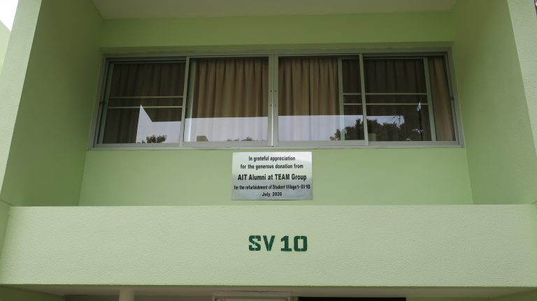 นอกจากนี้ ดร.อภิชาติ สระมูล และ Dr. Eden Y Woon ได้ลงนามใน MOU การบริจาคเงินจำนวน 1 ล้านบาท ซึ่งเป็นการบริจาคที่นักเรียนเก่า AIT ใน TEAM บริจาคให้กับ มูลนิธิ AIT for Endowment Fund Foundation ให้นำใช้ในการปรับปรุงบ้านพักนักศึกษา หลังที่ 5 และหลังที่ 10 จำนวน 2 หลัง รวม 12 ห้องนอน ของสถาบันเทคโนโลยีแห่งเอเชีย (AIT) และได้ทำพิธีเปิดใช้งานอาคารทั้งสองหลังในโอกาสนี้ด้วย