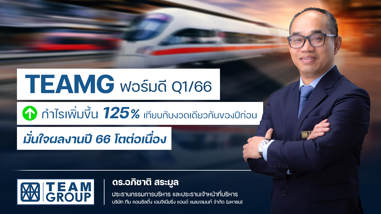ดร.อภิชาติ สระมูล  ประธานเจ้าหน้าที่บริหาร บริษัท ทีม คอนซัลติ้ง เอนจิเนียริ่ง แอนด์ แมเนจเมนท์ จำกัด (มหาชน) หรือ TEAMG เปิดเผยว่า ในไตรมาส 1/2566 (สิ้นสุดมี.ค.66) บริษัทมีรายได้รวมอยู่ที่ 416.38 ล้านบาท กำไรสุทธิ 41.29 ล้านบาท เพิ่มขึ้น 125.1% จากช่วงเดียวกันปีก่อนที่มีอัตรากำไรสุทธิ 9.9%