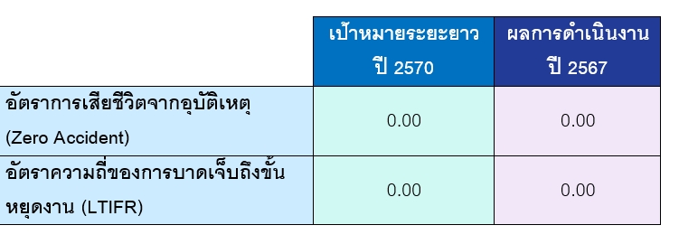 ผลการดำเนินการและเป้าหมายด้านความปลอดภัยและสุขอนามัยของพนักงาน