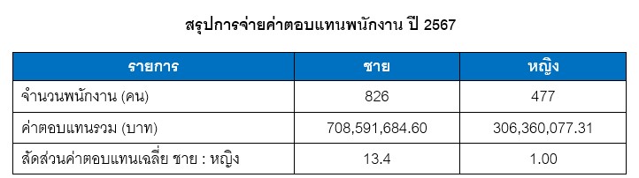 บริษัทมีนโยบายการจ่ายค่าตอบแทนที่เป็นธรรมสอดคล้องกับภาระหน้าที่และผลการปฏิบัติงานของพนักงานและสามารถแข่งขันได้ในตลาด โดยออกแบบระบบค่าตอบแทนที่มีความยุติธรรม โปร่งใส ปราศจากการเลือกปฏิบัติ ไม่ว่าจะทำงานอยู่ส่วนใด ฝ่ายใด อายุ หรือ เพศใด ๆ โดยยึดหลักบริหารความเป็นธรรม (Equity) จะต้องมีความเท่าเทียมกันสำหรับผู้ที่ทำงานในระดับหน้าที่และความรับผิดชอบและความยากง่ายของงานที่เทียบเคียงกันได้ การกำหนดค่าตอบแทนให้สามารถดึงดูดบุคลากรคุณภาพ สอดคล้องกับการจ้างงานในตลาดแรงงานและการขยายตัวของบริษัท ตลอดจนกำหนดการวัดผลการปฏิบัติงาน (Performance) และสมรรถนะ (Competency) เพื่อนำผลประเมินการทำงานไปประกอบการพิจารณาค่าตอบแทนพนักงานอย่างเป็นธรรมและเหมาะสมกับศักยภาพและบทบาทหน้าที่ของพนักงาน โดยปีที่ผ่านมา บริษัทจ่ายค่าตอบแทนให้กับพนักงานจำนวนทั้งสิ้นประมาณ 1,015 ล้านบาท โดยเป็นค่าตอบแทนในรูปแบบของเงินเดือน เงินรางวัลประจำปี ค่าทำงานล่วงเวลา เบี้ยเลี้ยง เงินสมทบกองทุนสำรองเลี้ยงชีพ และค่าตอบแทนอื่น ๆ