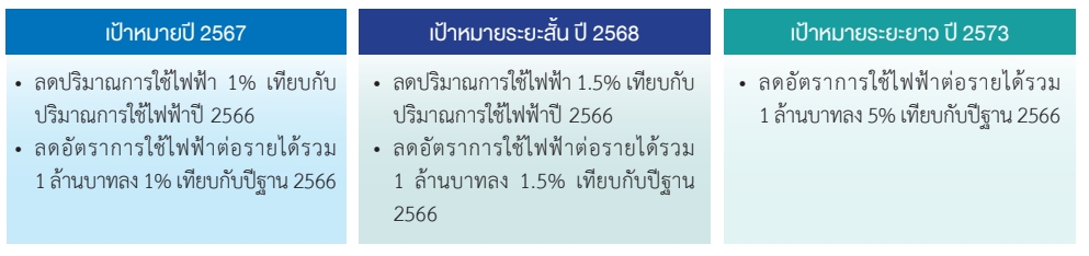 บริษัทกำหนดเป้าหมายในการลดปริมาณการใช้ไฟฟ้า ดังนี้