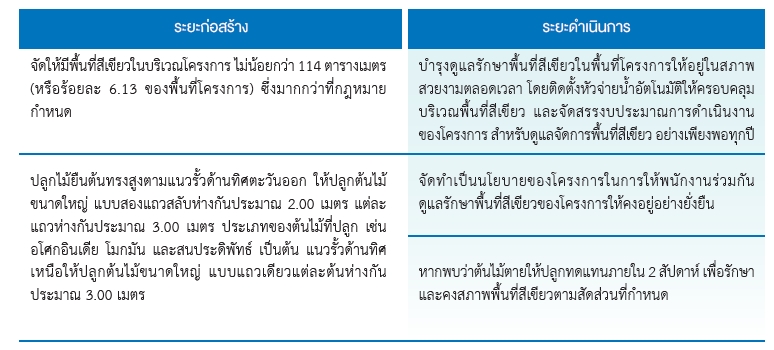 - รายงานค่าการปล่อย CO₂ และฝุ่นละอองในพื้นที่ก่อสร้าง ทุกไตรมาสในรายงานความยั่งยืนของโครงการ