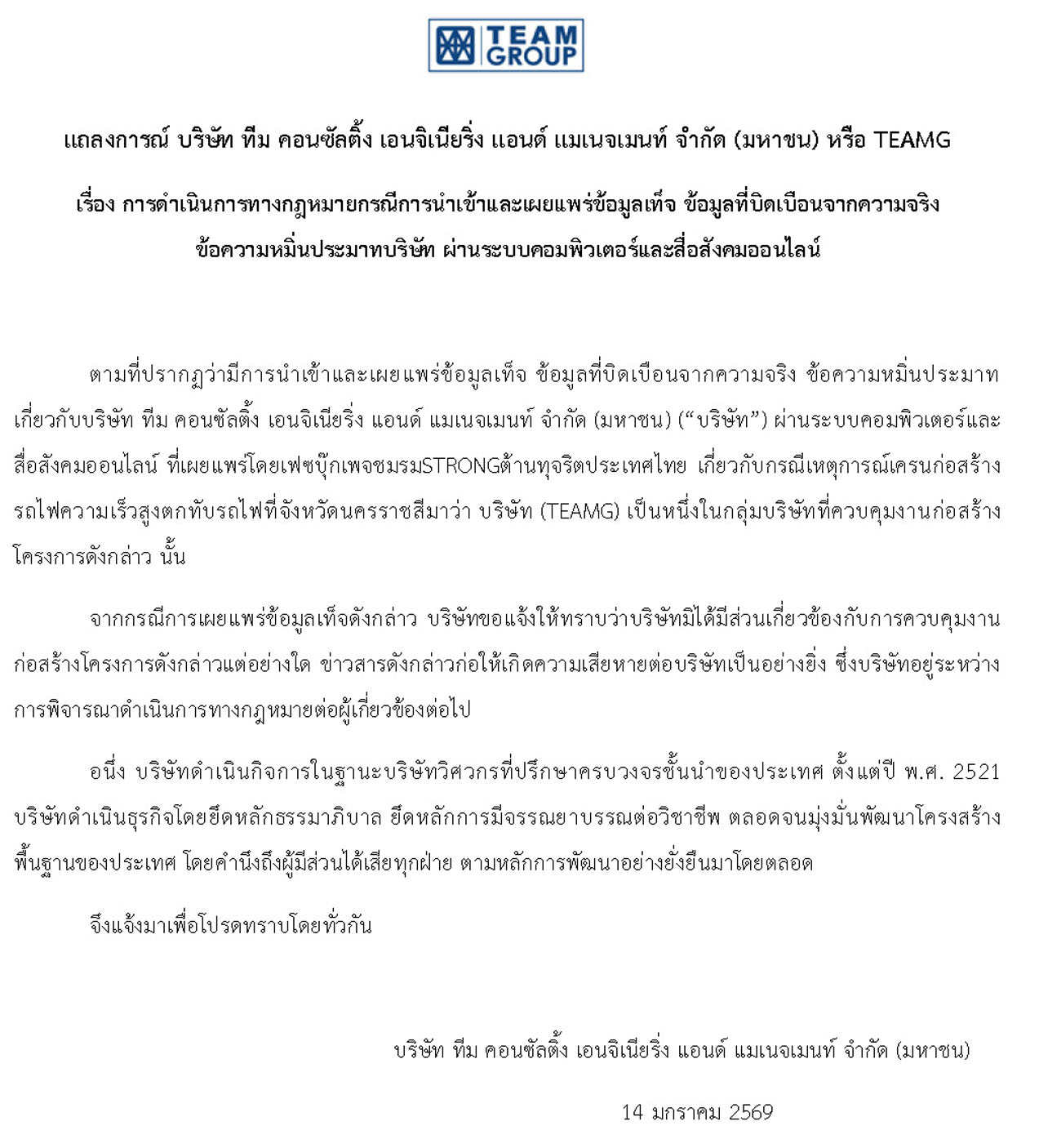 TEAMG เฮรับราคากลางจ้างที่ปรึกษาใหม่เพิ่ม 14% ปี 68 รับงานทะลุเป้า แตะ 3 พันล้าน โต 85% YoY