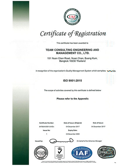 ทีมกรุ๊ป ดำเนินการด้วยระบบการบริหารจัดการที่มีประสิทธิภาพได้มาตรฐานสากล มุ่งเน้นการพัฒนาคุณภาพบริการอย่างต่อเนื่อง เพื่อความพึงพอใจสูงสุดของลูกค้า และยืนหยัดเป็นผู้นำในธุรกิจที่ปรึกษาและธุรกิจเกี่ยวเนื่อง มาตรฐาน ISO 9001: 2015 เป็นสิ่งยืนยันได้อย่างดีถึงความมุ่งมั่นและความสามารถของเราในการตอบสนองความต้องการของลูกค้า โดยสอดคล้องกับข้อบัญญัติทางกฎหมาย